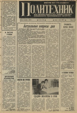 Политехник : газета. 1985 г. № 20 (746) (5 июня)