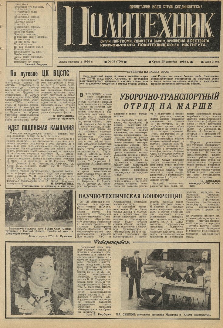 Политехник : газета. 1985 г. № 24 (750) (25 сентября)