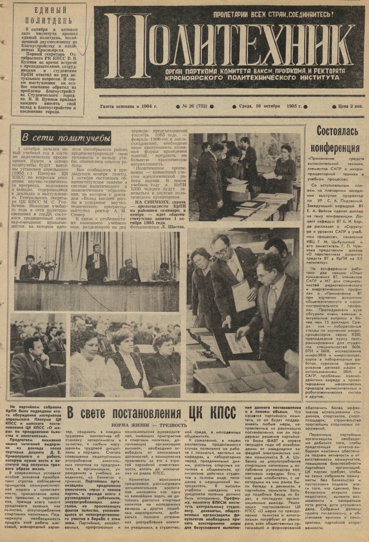 Политехник : газета. 1985 г. № 26 (752) (16 октября)