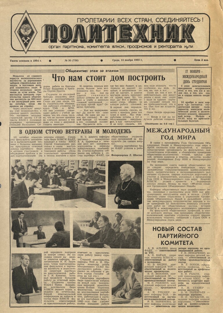 Политехник : газета. 1985 г. № 30 (756) (13 ноября)