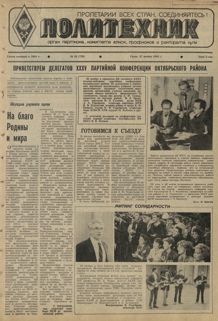 Политехник : газета. 1985 г. № 32 (758) (27 ноября)
