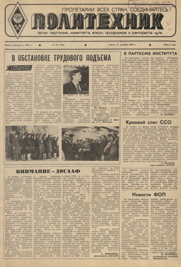 Политехник : газета. 1985 г. № 33 (759) (11 декабря)