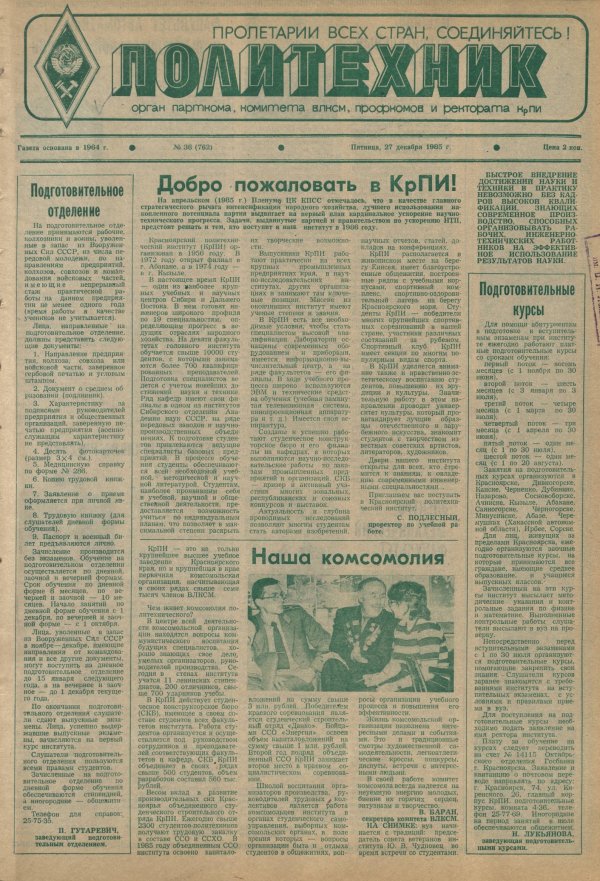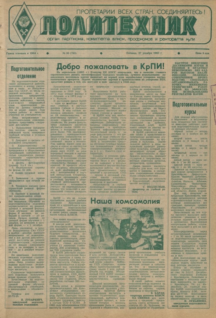 Политехник : газета. 1985 г. № 36 (762) (27 декабря)
