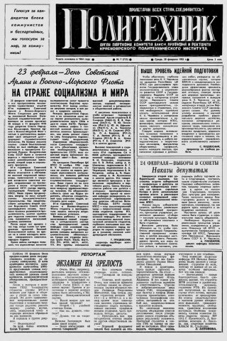 Политехник : газета. 1985 г. № 7 (733) (20 февраля)