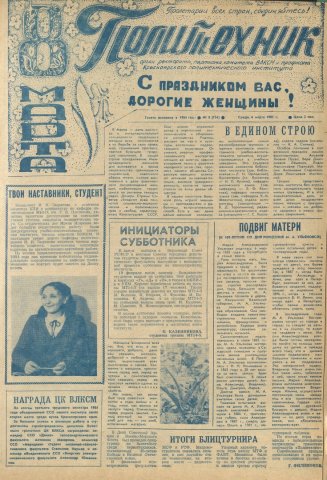 Политехник : газета. 1985 г. № 8 (734) (6 марта)