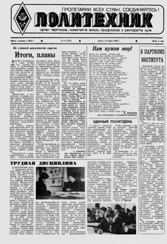 Политехник : газета. 1986 г. № 11 (773) (19 марта)