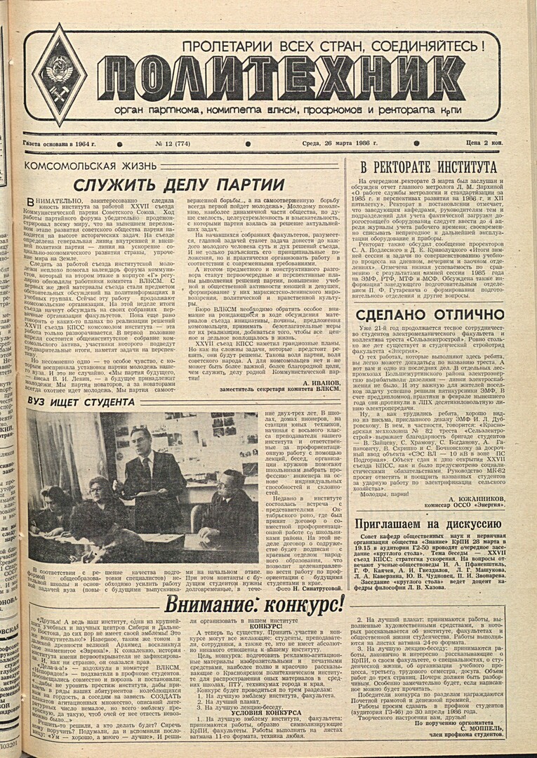 Политехник : газета. 1986 г. № 12 (774) (26 марта)
