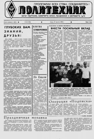 Политехник : газета. 1986 г. № 26 (788) (27 августа)