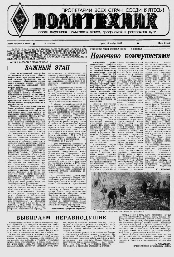 Политехник : газета. 1986 г. № 33 (794) (12 ноября)