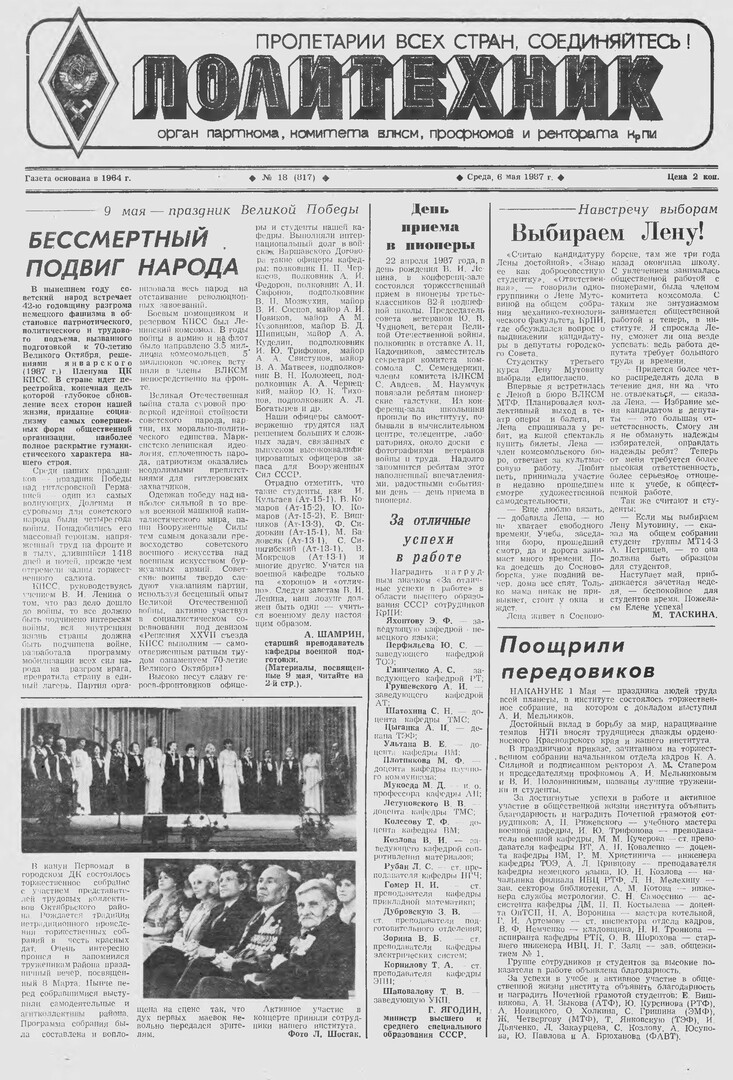 Политехник : газета. 1987 г. № 18 (817) (6 мая)