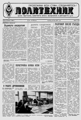 Политехник : газета. 1987 г. № 19 (818) (20 мая)