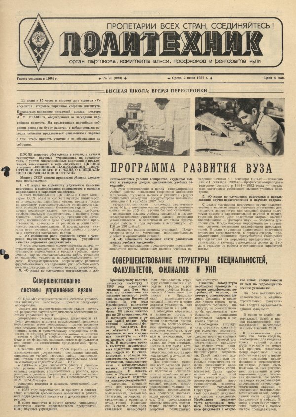 Политехник : газета. 1987 г. № 21 (820) (3 июня)