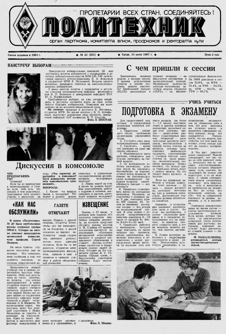 Политехник : газета. 1987 г. № 22 (821) (10 июня)