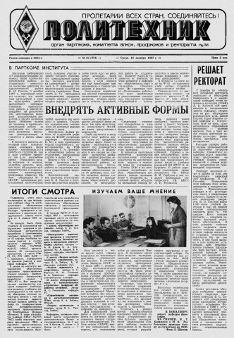 Политехник : газета. 1987 г. № 32 (831) (16 декабря)