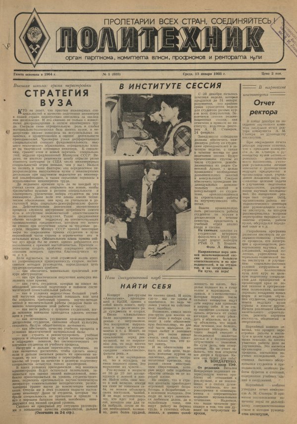 Политехник : газета. 1988 г. № 1 (833) (13 января)