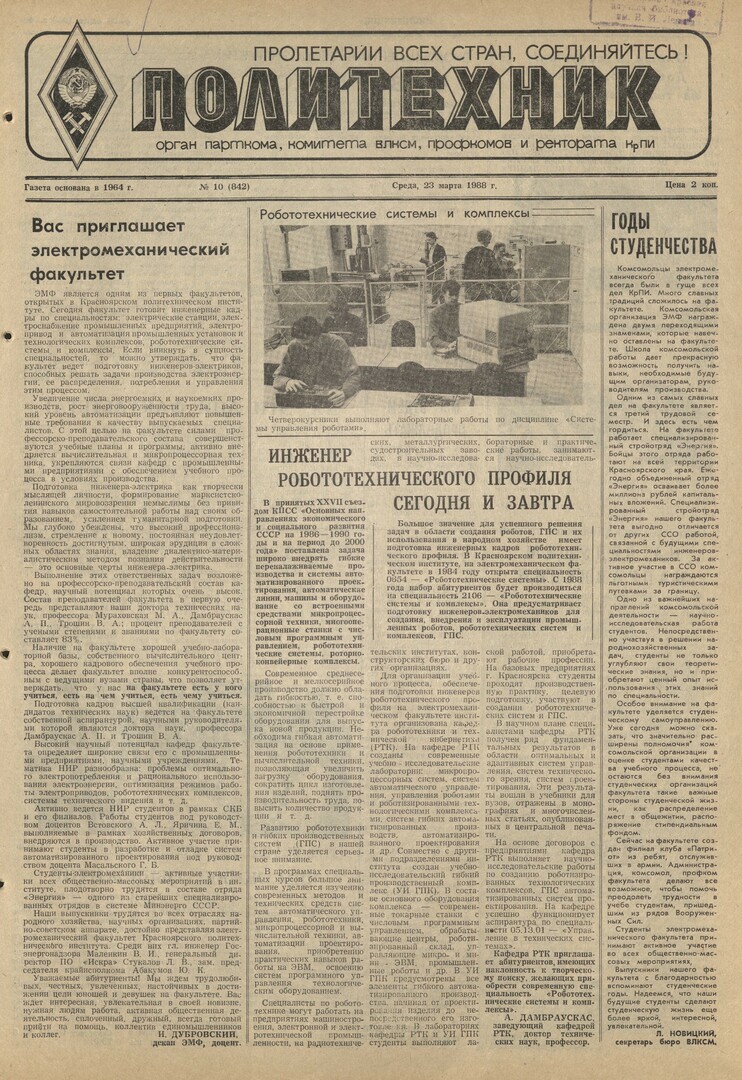 Политехник : газета. 1988 г. № 10 (842) (23 марта)