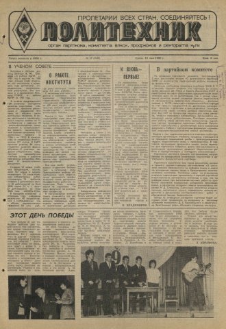 Политехник : газета. 1988 г. № 17 (849) (18 мая)