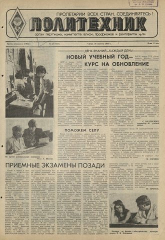 Политехник : газета. 1988 г. № 23 (855) (31 августа)