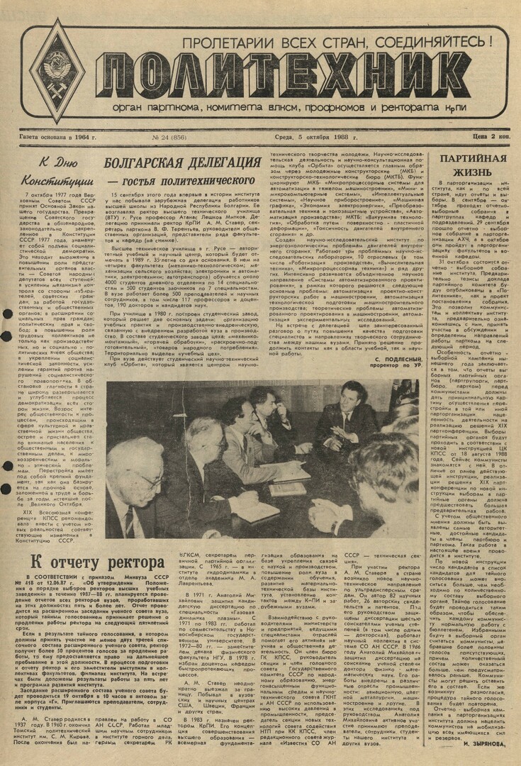 Политехник : газета. 1988 г. № 24 (856) (5 октября)