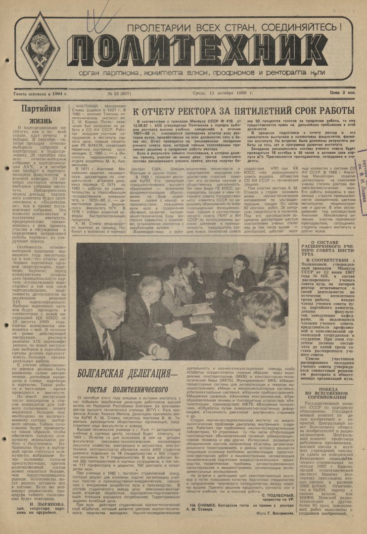 Политехник : газета. 1988 г. № 25 (857) (12 октября)