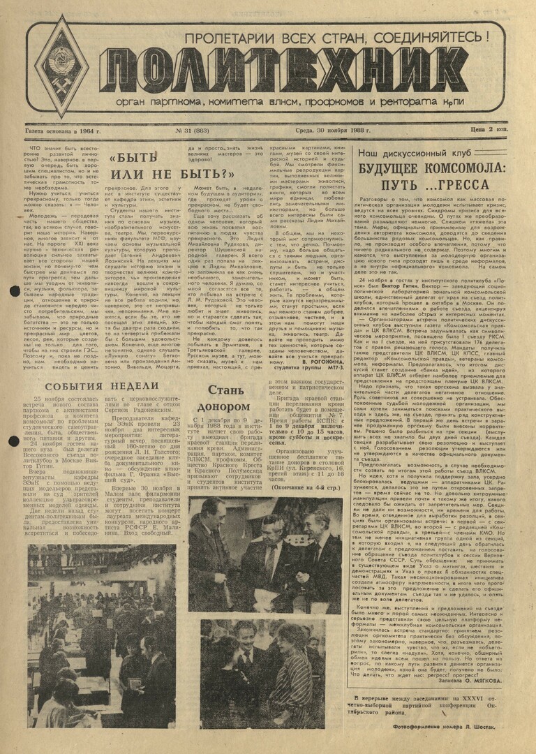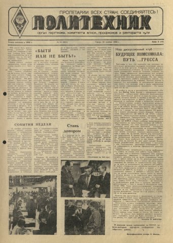Политехник : газета. 1988 г. № 31 (863) (30 ноября)