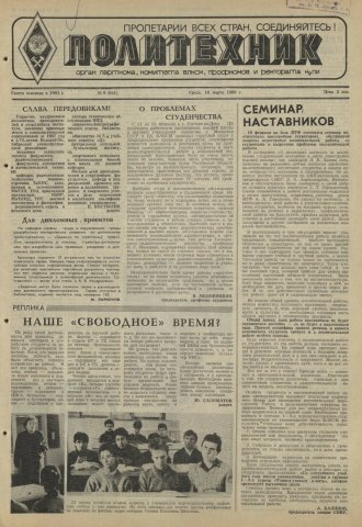 Политехник : газета. 1988 г. № 9 (841) (16 марта)