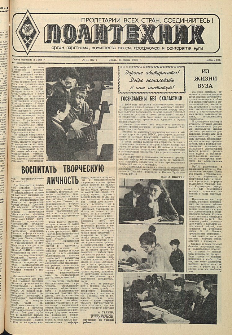 Политехник : газета. 1989 г. № 10 (877) (15 марта)