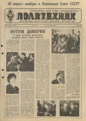 Политехник : газета. 1989 г. № 11 (878) (22 марта)