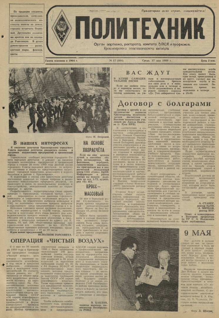 Политехник : газета. 1989 г. № 17 (884) (17 мая)