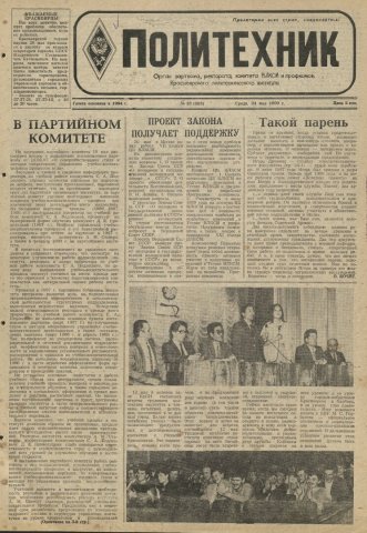 Политехник : газета. 1989 г. № 18 (885) (24 мая)