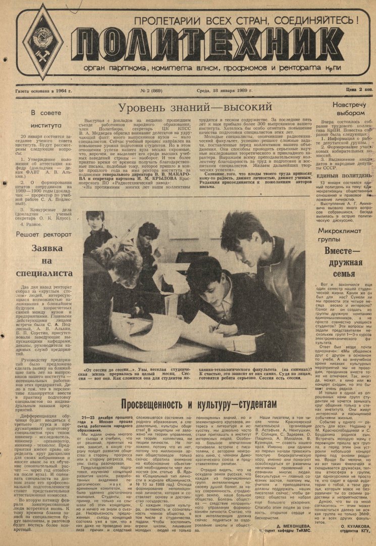 Политехник : газета. 1989 г. № 2 (869) (18 января)
