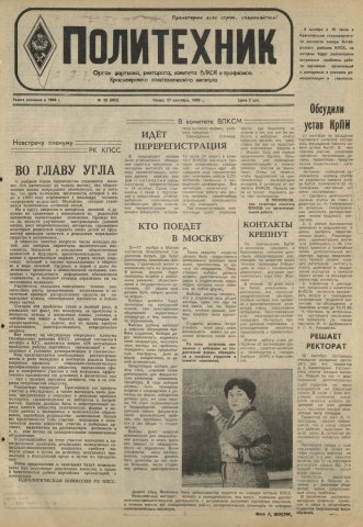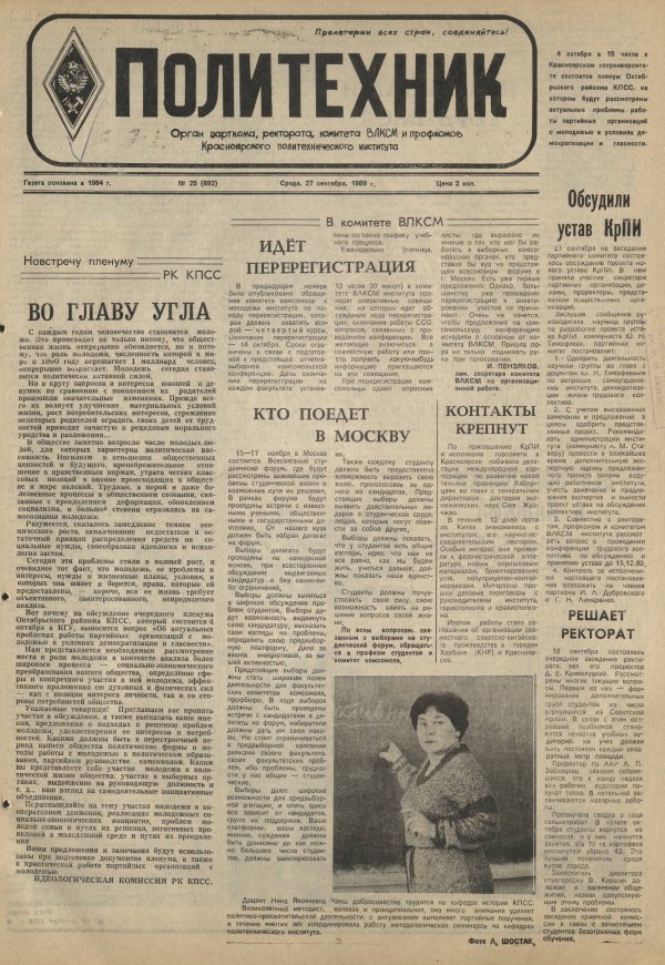 Политехник : газета. 1989 г. № 25 (892) (27 сентября)