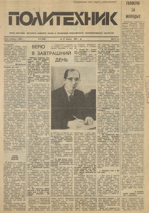 Политехник : газета. 1990 г. № 5 (906) (27 февраля)