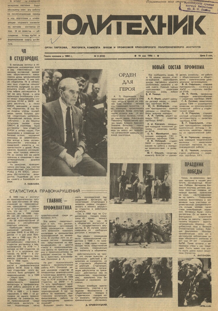 Политехник : газета. 1990 г. № 9 (910) (16 мая)