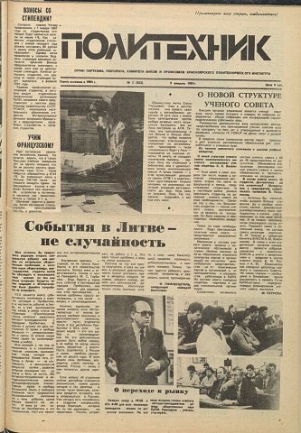 Политехник : газета. 1991 г. № 2 (923) (9 февраля)
