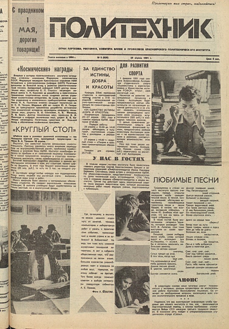 Политехник : газета. 1991 г. № 5 (926) (29 апреля)