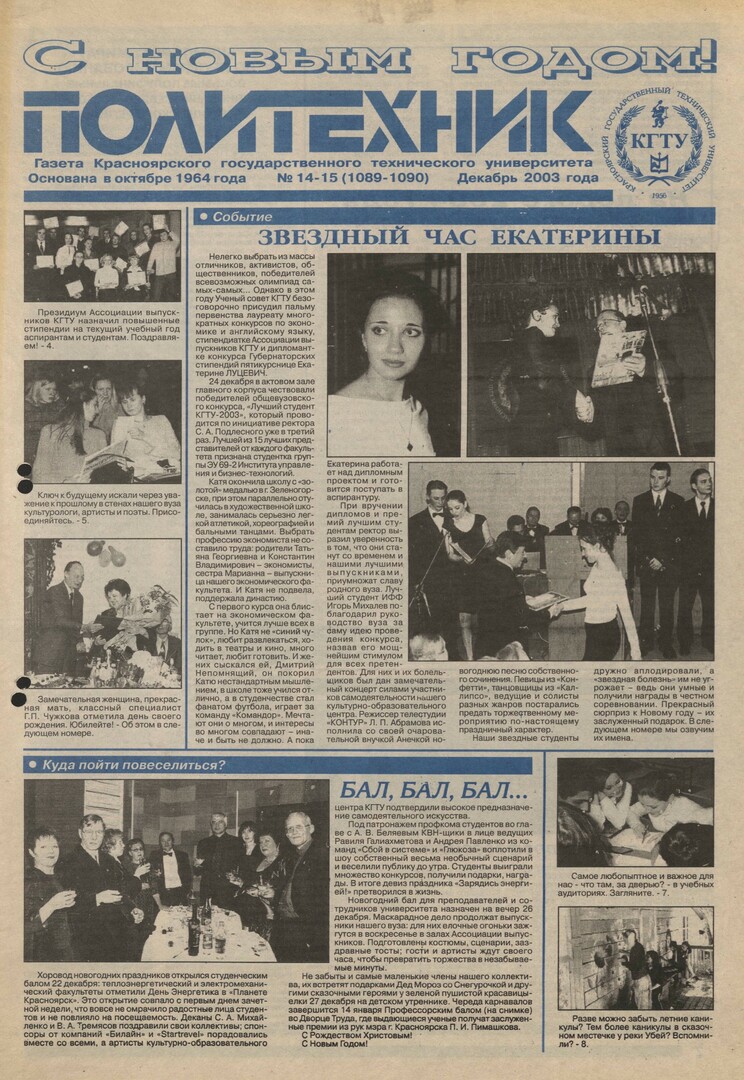 Политехник : газета. 2003 г. № 14/15 (1089-1090) (Декабрь)