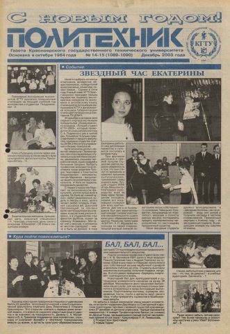 Политехник : газета/ Краснояр. политех. ин-т. - Красноярск : КГТУ, 1964 - - 2006 2003г. N 14/15 (1089-1090) (Декабрь) http://lib3.sfu-kras.ru/ft/LIB2/ELIB_DC/SFUPRSV/sfupol/2003/2003_12_ _1089-1090.pdf