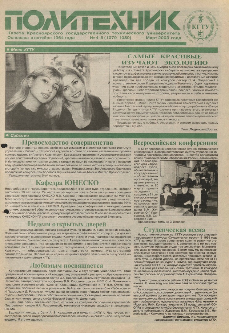 Политехник : газета. 2003 г. № 4/5 (1079-1080) (Март)