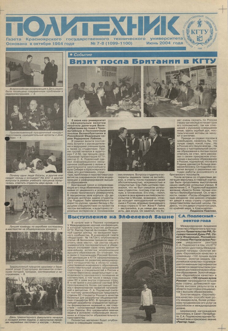 Политехник : газета. 2004 г. № 7/8 (1099-1100) (Июнь)