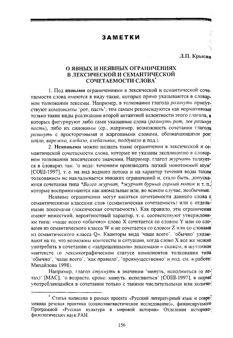Библиографическое описание:Крысин, Леонид Петрович. О явных и неявных ограничениях в лексической и семантической сочетаемости слова / Л. П. Крысин. - Текст : непосредственный // Российский лингвистический ежегодник. - 2007. - Вып. 2 (9). - С. 156-159. - Библиогр. в конце ст. - ISSN 1817-1222.