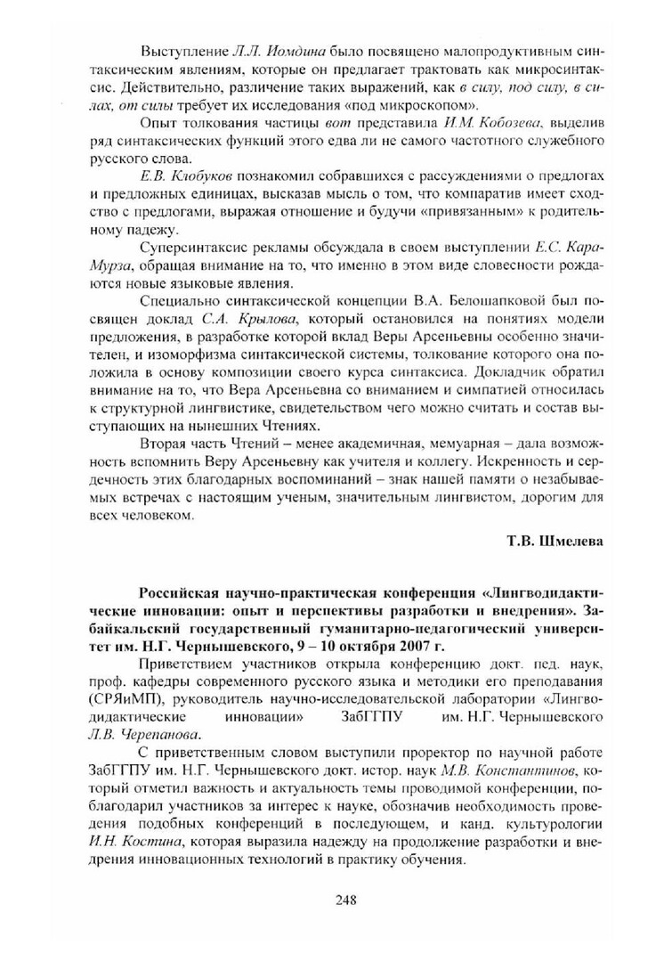 Библиографическое описание:Черепанова, Лариса Витальевна. Хроникальные заметки : [о российской научно-практической конференции "Лингводидактические инновации: опыт и перспективы разработки и внедрения" (Чита, ЗабГГПУ им. Н. Г. Чернышевского, 9-10 октября 2007 г.)] / Л. В. Черепанова, О. В. Трофимова. - Текст : непосредственный // Российский лингвистический ежегодник. - 2008. - Вып. 3 (10). - С. 248-253. - ISSN 1817-1222.