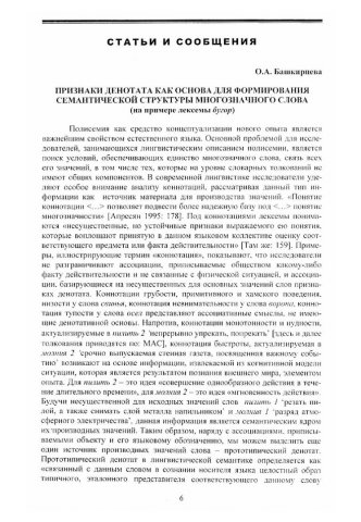 Библиографическое описание:Башкирцева, Оксана Александровна. Признаки денотата как основа для формирования семантической структуры многозначного слова : (на примере лексемы БУГОР) / О. А. Башкирцева. - Текст : непосредственный // Российский лингвистический ежегодник. - 2008. - Вып. 3 (10). - С. 6-16. - Библиогр. в конце ст. - ISSN 1817-1222.
