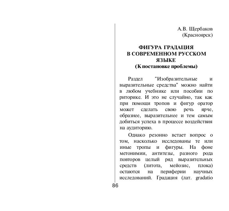 Библиографическое описание:Щербаков, А. В. Фигура градация в современном русском языке (к постановке проблемы) / А. В. Щербаков. - Текст : непосредственный // Речевое общение. - 2000. - Вып. 1 (9). - С. 86-90. - Библиогр. в конце ст. - ISSN 1682-3923.