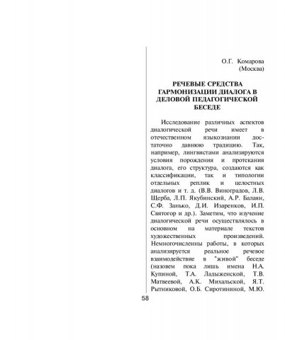 Библиографическое описание:Комарова, О. Г. Речевые средства гармонизации диалога в деловой педагогической беседе / О. Г. Комарова. - Текст : непосредственный // Речевое общение. - 2000. - Вып. 1 (9). - С. 58-63. - Библиогр. в конце ст. - ISSN 1682-3923.