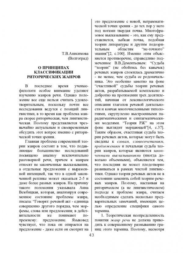 Анисимова, Т. В. О принципах классификации риторических жанров / Т. В. Анисимова. - Текст : непосредственный // Речевое общение. - 2000. - Вып. 2 (10). - С. 43-48. - Библиогр. в конце ст. - ISSN 1682-3923.