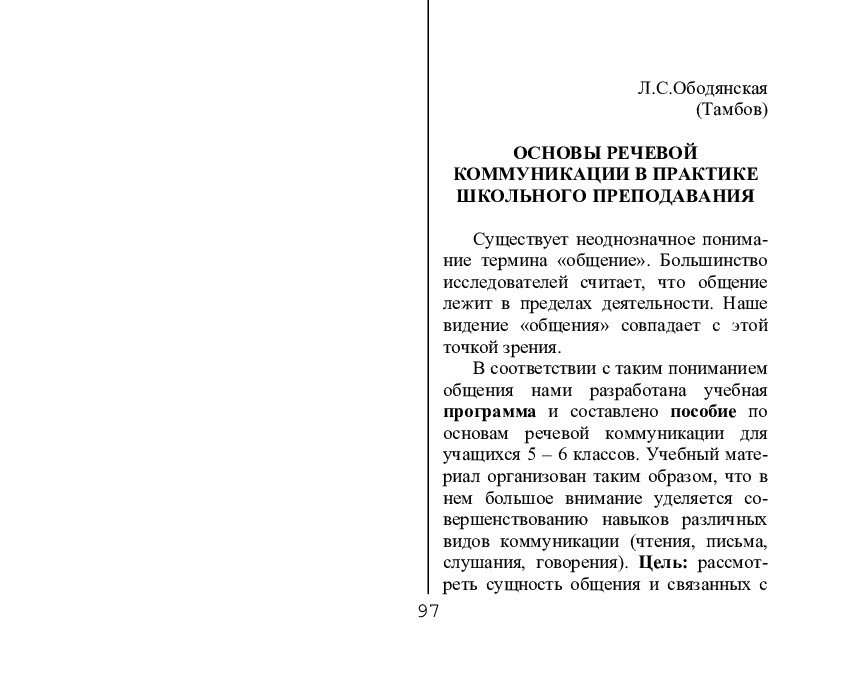Ободянская, Л. С. Основы речевой коммуникации в практике школьного преподавания / Л. С. Ободянская. - Текст : непосредственный // Речевое общение. - 2000. - Вып. 2 (10). - С. 97-100. - ISSN 1682-3923.