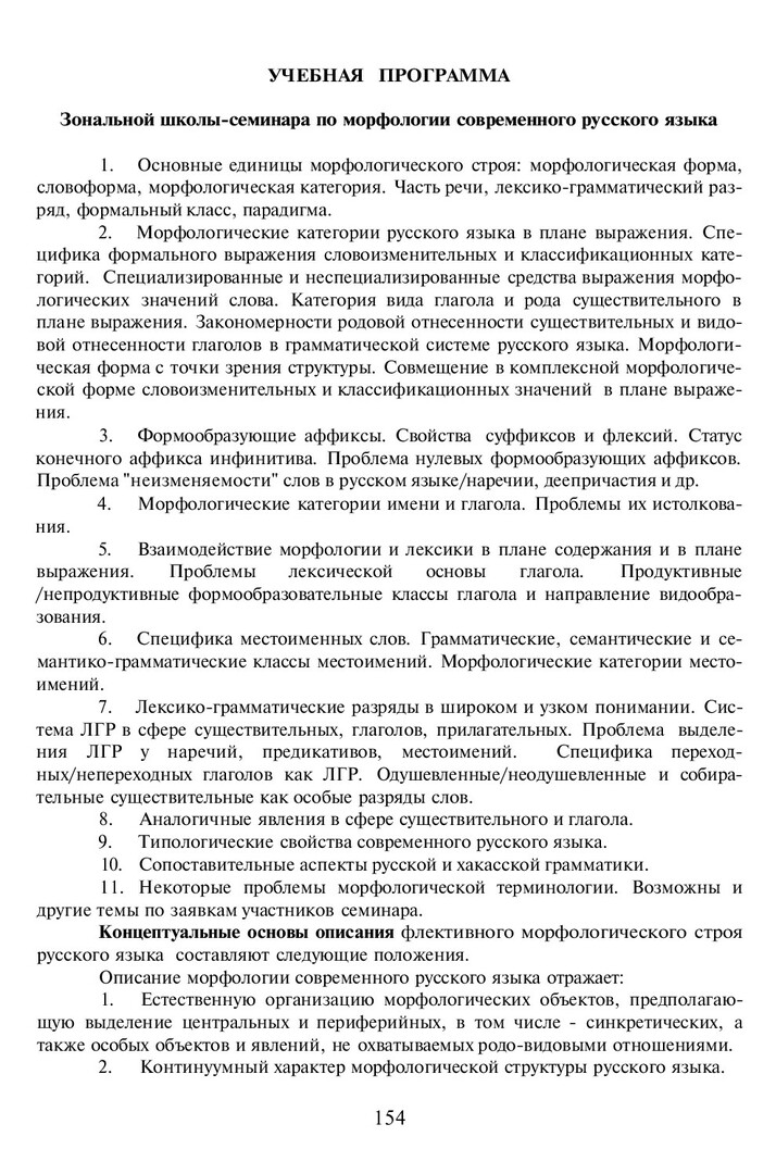 Учебная программа Зональной школы-семинара по морфлогии современного русского языка