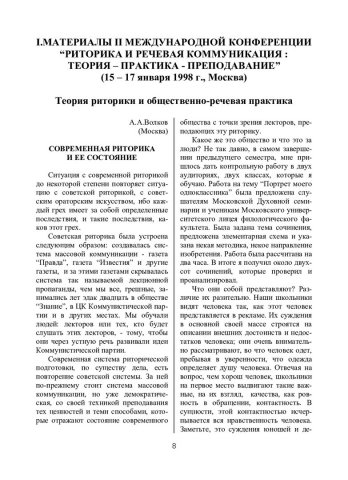 Волков, А. А. Современная риторика и ее состояние / А. А. Волков. - Текст : непосредственный // Речевое общение. - 2000. - Вып. 2 (10). - С. 8-11. - ISSN 1682-3923.