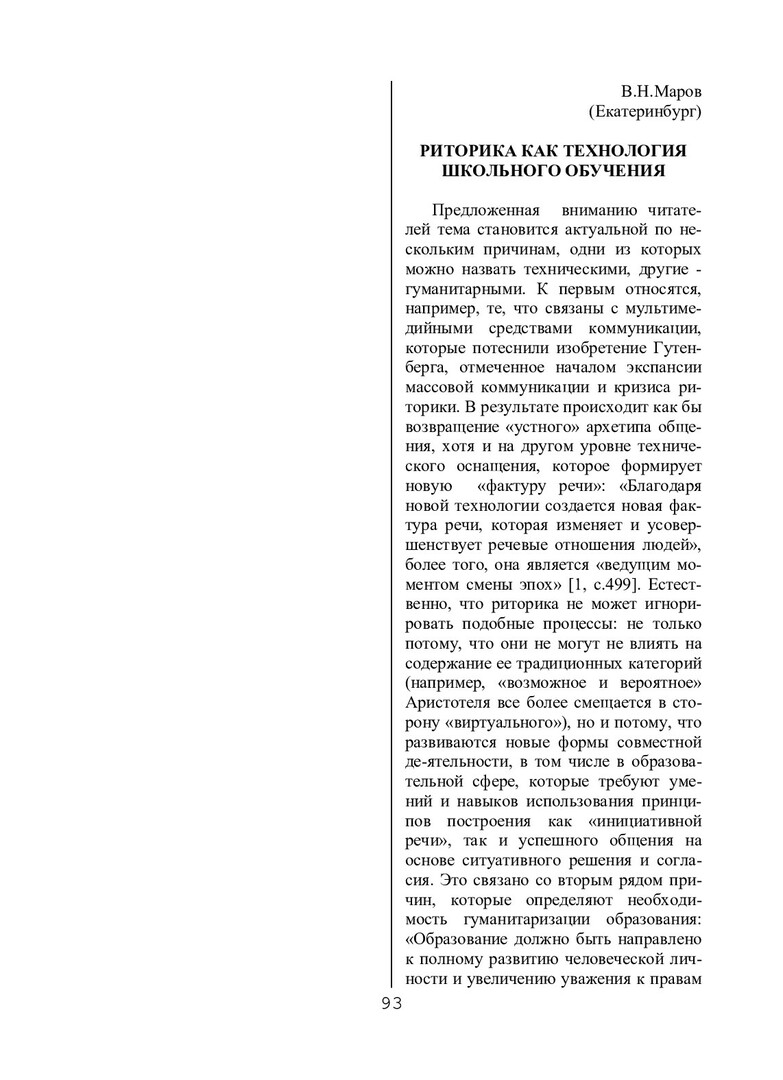 Маров, В. Н. Риторика как технология школьного обучения / В. Н. Маров. - Текст : непосредственный // Речевое общение. - 2000. - Вып. 2 (10). - С. 93-97. - Библиогр. в конце ст. - ISSN 1682-3923.